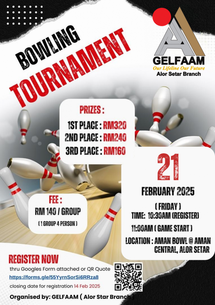 Posted on February 24, 2025March 5, 2025GELFAAM Alor Setar Branch – Bowling Tournament 2025 February 21