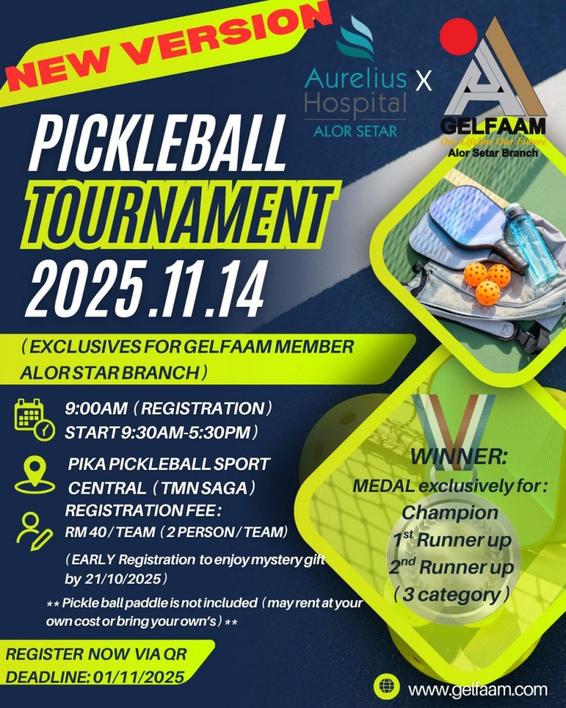 Posted on November 14, 2025November 18, 2025GELFAAM Alor Setar Branch – Pickleball Tournament 2025 November 14