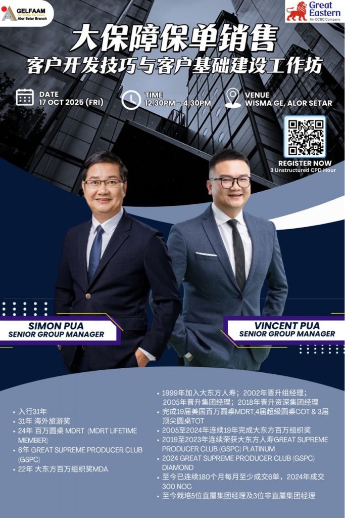Posted on October 2, 2025GELFAAM Alor Setar Branch – Mandarin Workshop: Policy Sales & Client Development 2025 October 17 Click to Register Now!!!